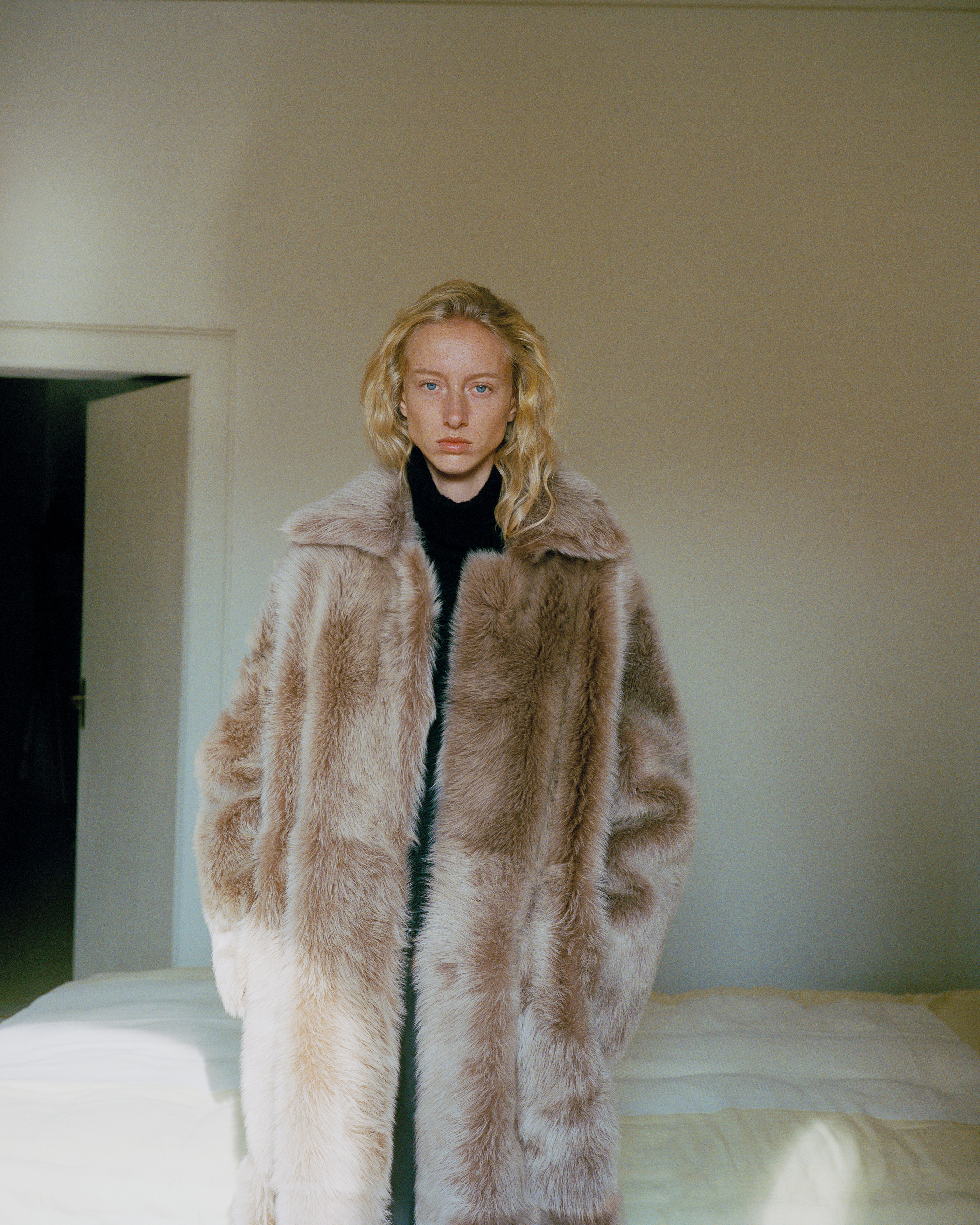 Please always store your shearling items hanging and in cotton garment bag. Before wearing your shearling, we recommend that you treat it with a clear water-repellent spray. Spray it at around 30cm from the jacket on the fabric, and let it airdry after (preferably outside). When sprayed in, shearling can handle rain and snow quite well. If your coat unexpectedly becomes really wet, please shake off the excess water and blot dry with a clean towel.